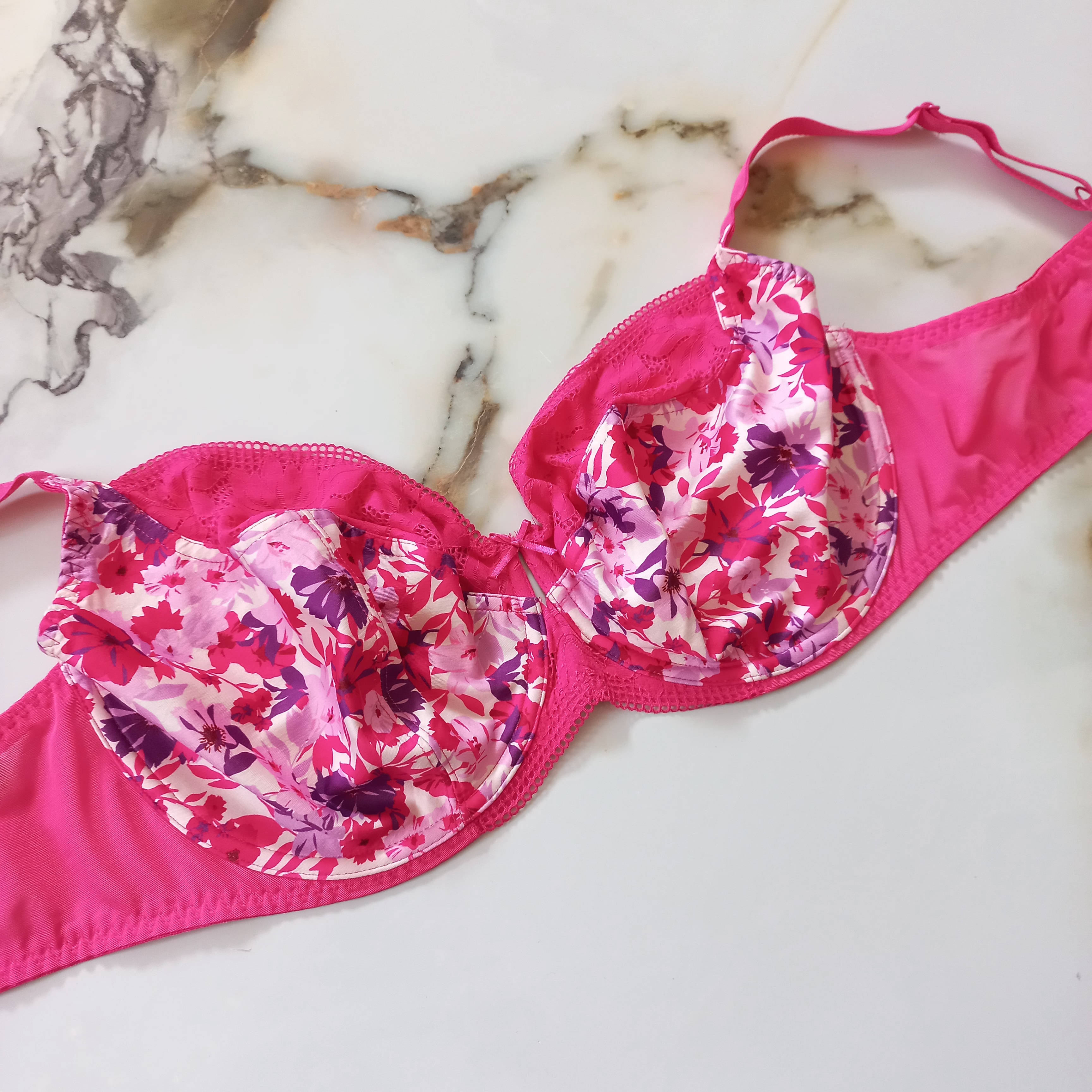 سوتین زنانه فنردار پلی استر توری صورتی گلدار برند اروپایی George