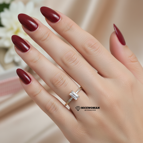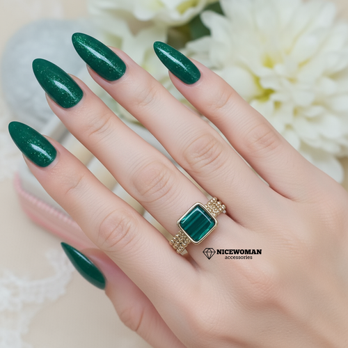 انگشتر زنانه طلایی نگین مریع سبز برند اروپایی ضدحساسیت
