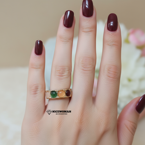 انگشتر زنانه طلایی نگین دار رنگی برند اروپایی ضدحساسیت