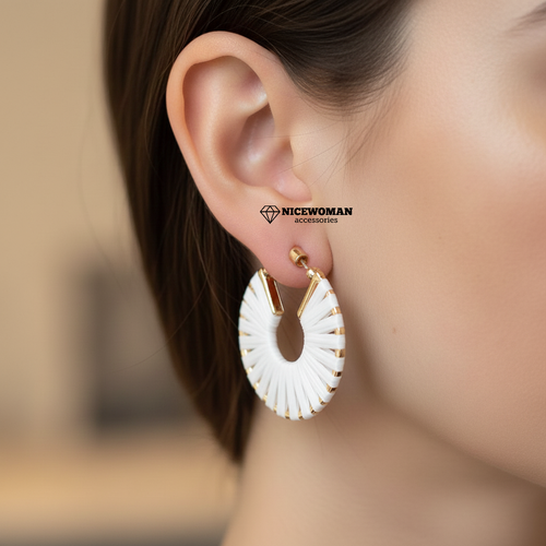 گوشواره زنانه میخی نیم حلقه ای طلایی فانتزی سفید برند اروپایی ضدحساسیت