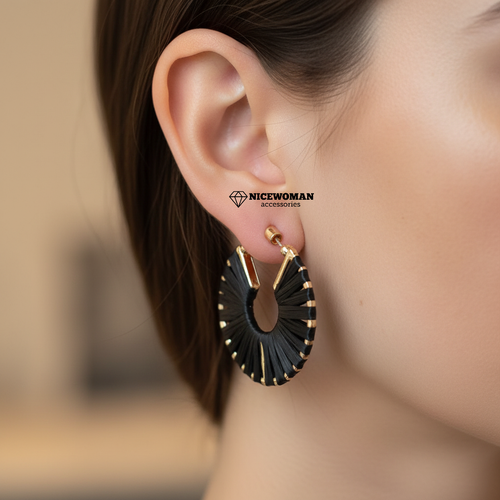 گوشواره زنانه میخی نیم حلقه مشکی طلایی برند اروپایی ضدحساسیت
