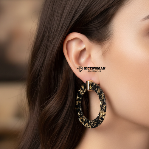 گوشواره زنانه میخی نیم حلقه ای طلایی فانتزی مشکی برند اروپایی ضدحساسیت