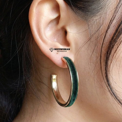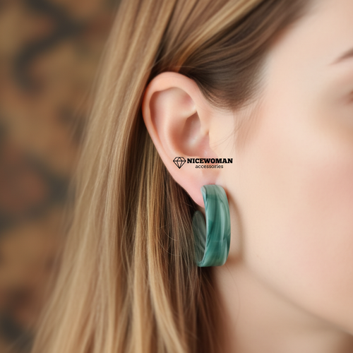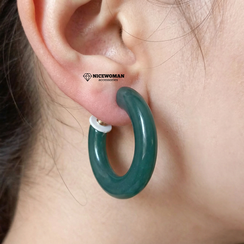 گوشواره زنانه میخی نیم حلقه سبز یشمی برند اروپایی ضدحساسیت