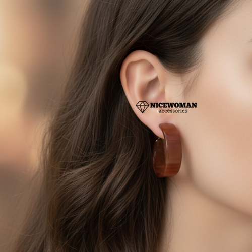 گوشواره زنانه میخی نیم حلقه قهوه ای برند اروپایی ضدحساسیت