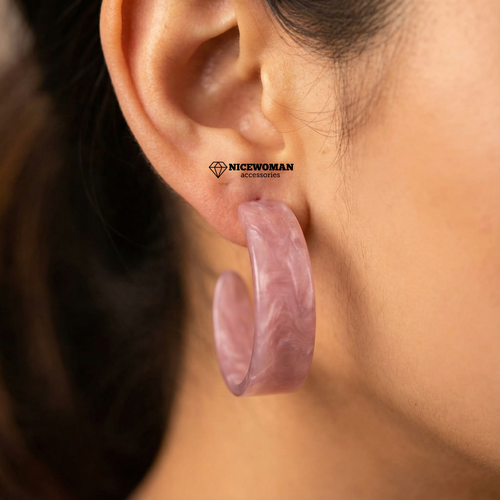 گوشواره زنانه میخی نیم حلقه صورتی کالباسی برند اروپایی ضدحساسیت