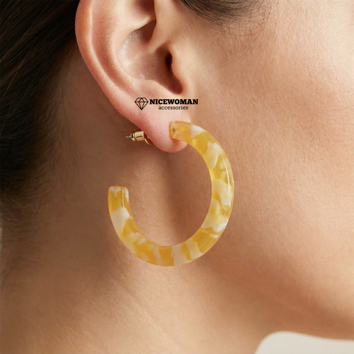 گوشواره زنانه میخی زرد نیم حلقه برند اروپایی ضدحساسیت
