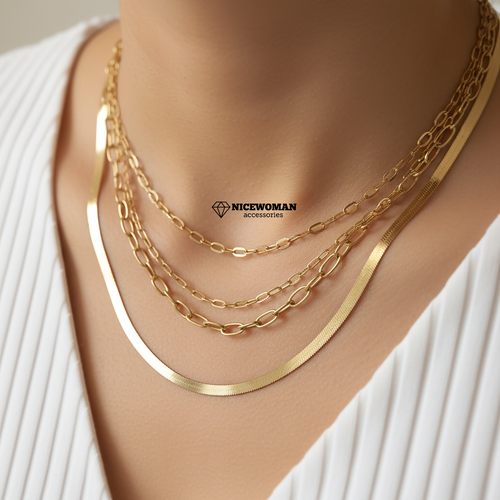 گردنبند زنانه سه ردیف طلایی زنجیری ماری برند اروپایی ضدحساسیت
