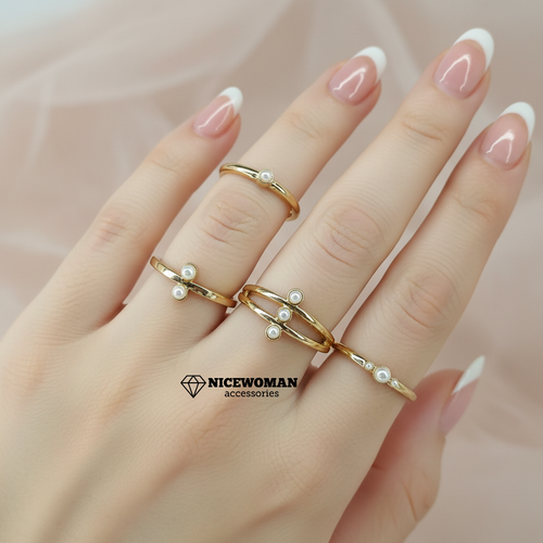 پک انگشتر طلایی مرواریدی برند اروپایی ضدحساسیت