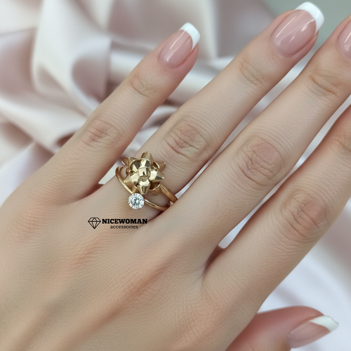 انگشتر زنانه طلایی ضربدری نگین دار برند اروپایی ضدحساسیت