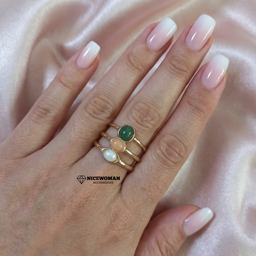 پک انگشتر طلایی مروارید و سنگ رنگی برند اروپایی ضدحساسیت