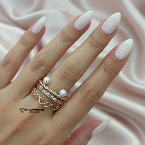 پک انگشتر طلایی مرواریدی و طرح دار و نگین دار برند اروپایی ضدحساسیت