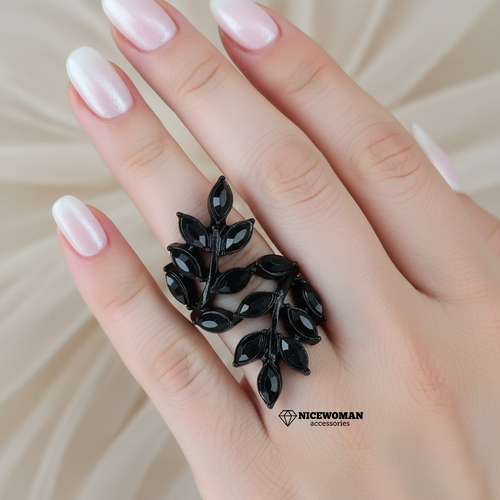 انگشتر مشکی طرح برگ نگین مشکی اروپایی ضدحساسیت
