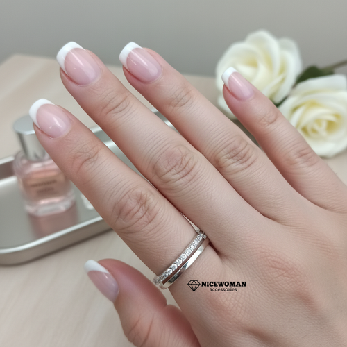 انگشتر نقره ای طرح دو ردیف ساده و نگین برند اروپایی ضدحساسیت