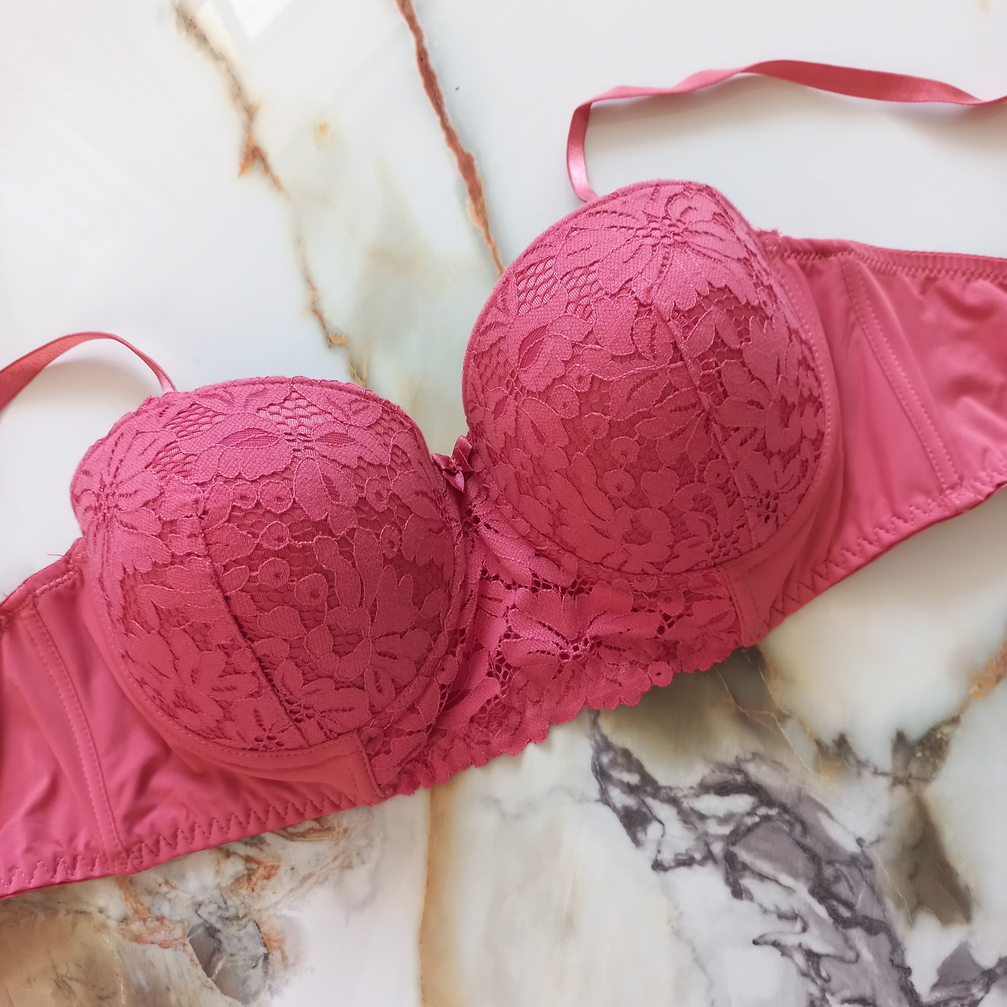 سوتین زنانه اسفنجی پوشاپ فنردار توری هلویی برند اروپایی anko