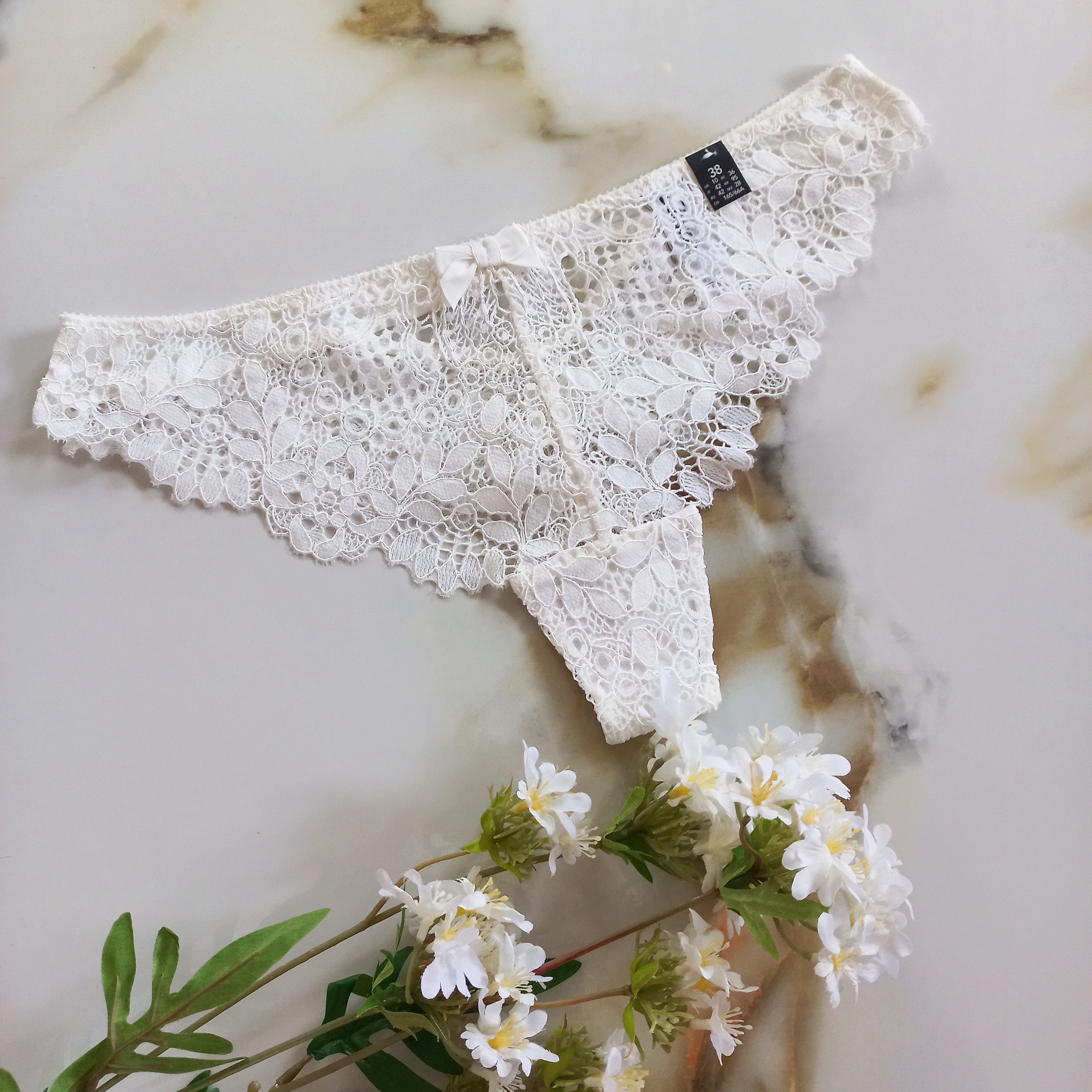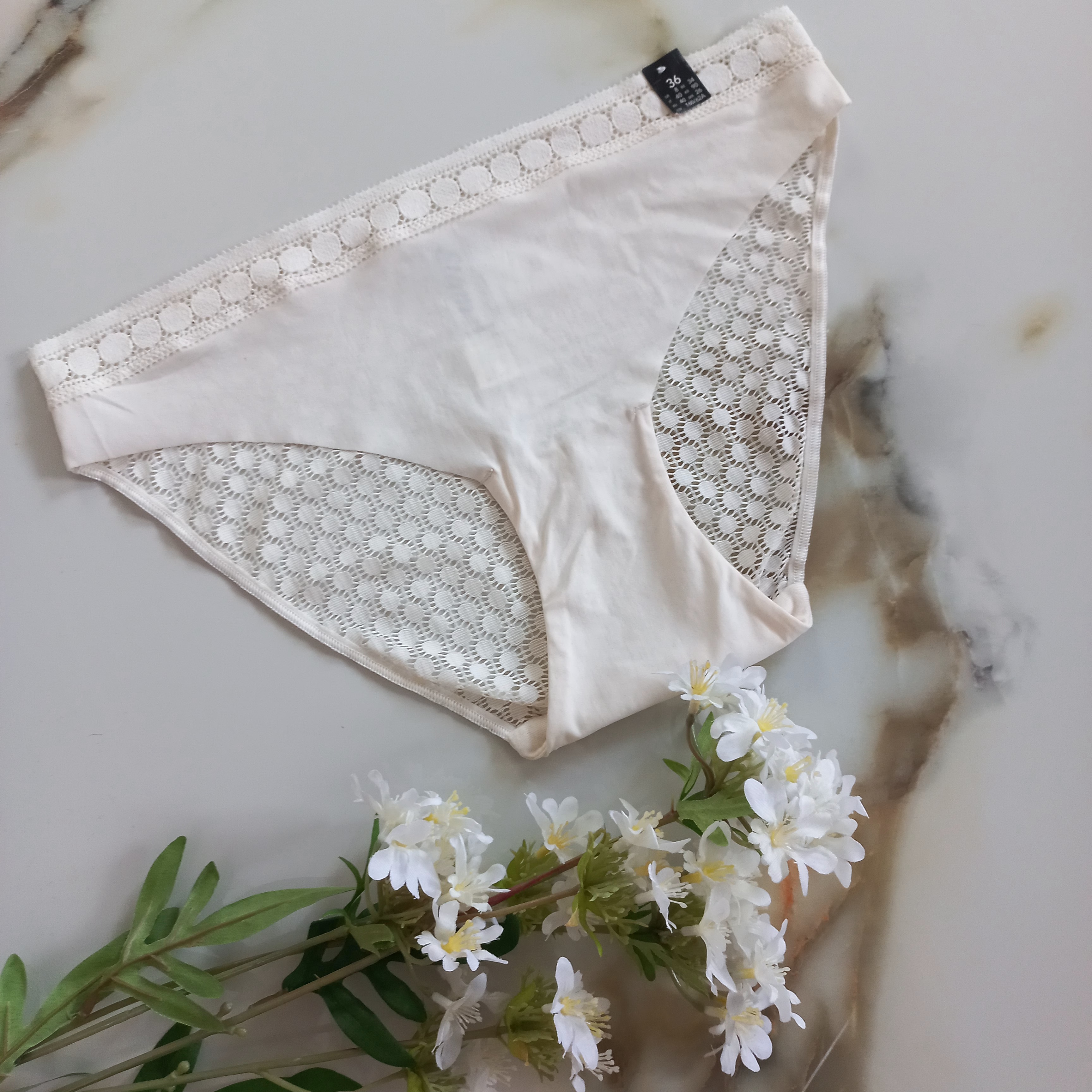 ناموجودشورت زنانه بکلس توری سفید نباتی برند اروپایی اتام