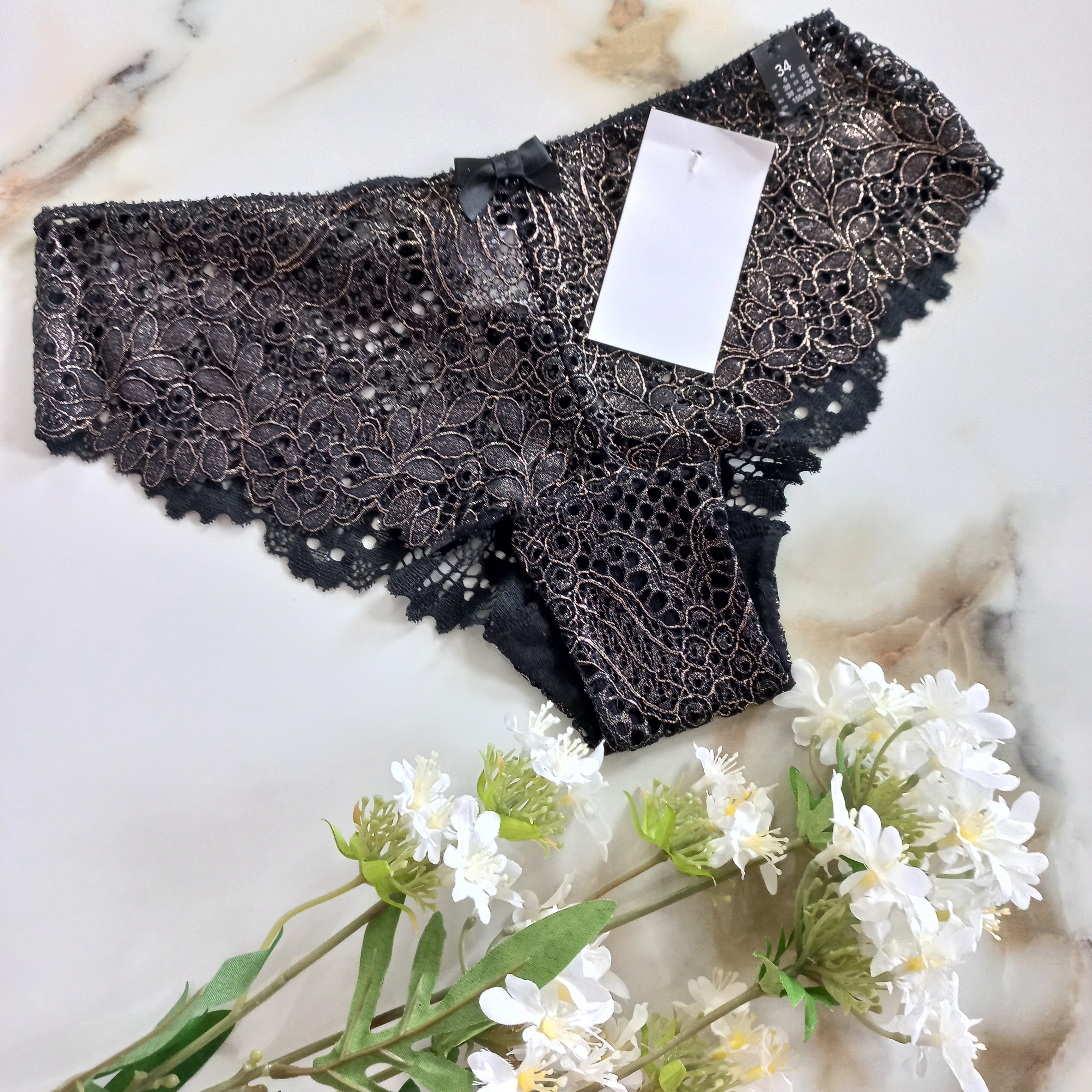 شورت زنانه توری مشکی اکلیلی برند اروپایی اتام
