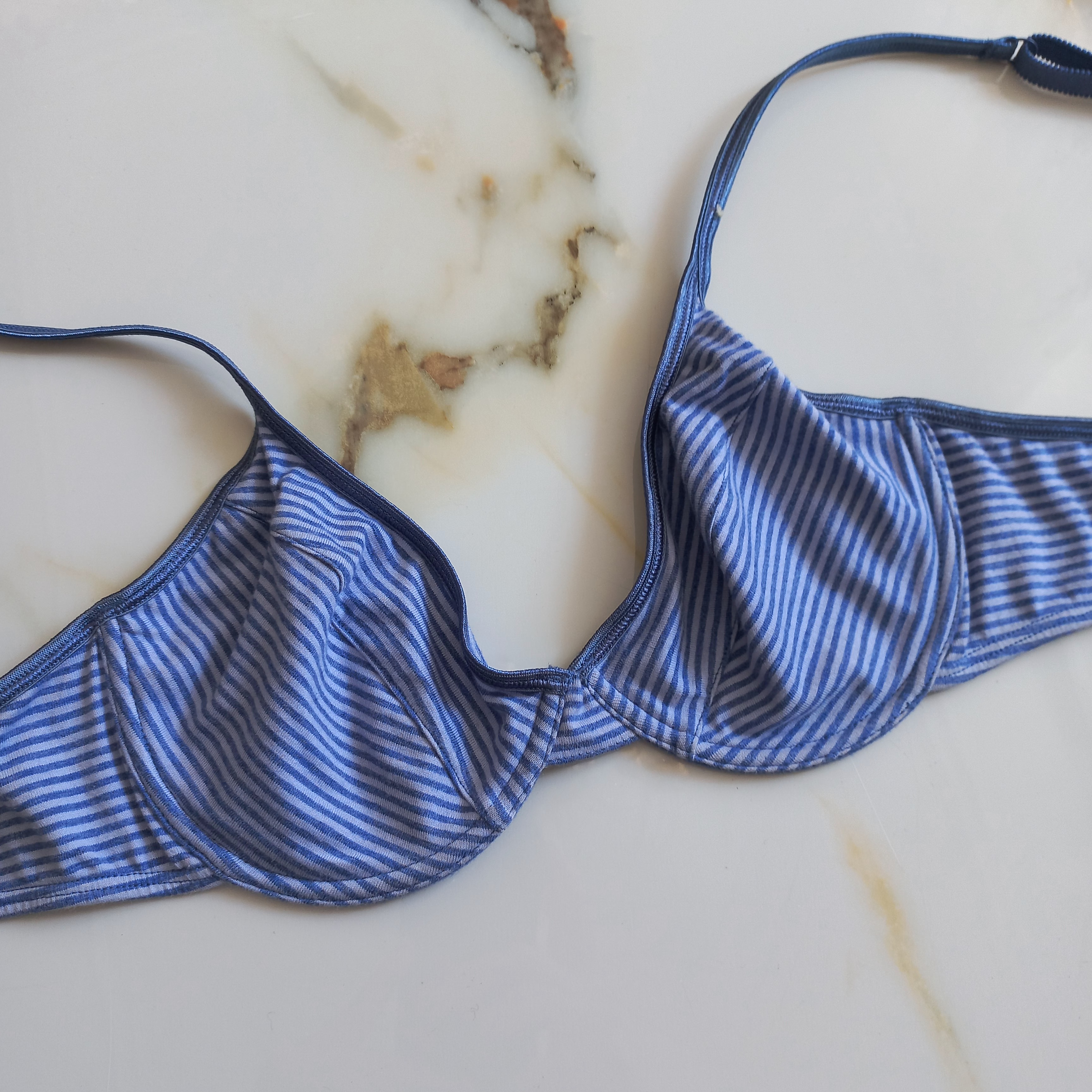ناموجودسوتین زنانه فنردار نخی آبی راه راه برند اروپایی etam