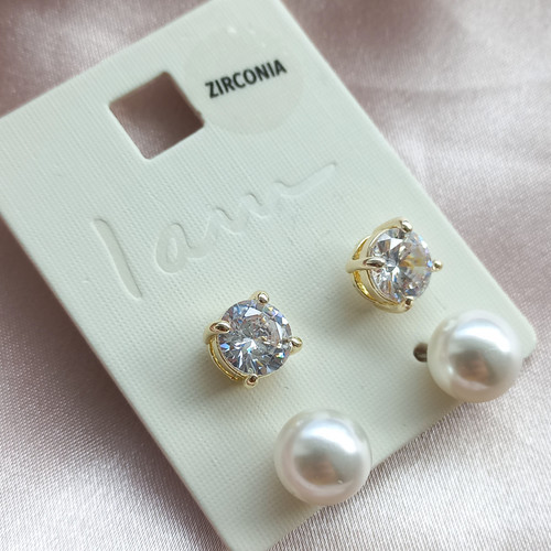 پک گوشواره زنانه میخی مروارید نگین طلایی برند اروپایی Iam ضدحساسیت