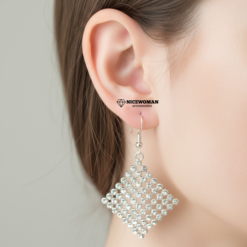 گوشواره زنانه آویز پارچه ای نگین دار نقره ای برند اروپایی Iam ضدحساسیت