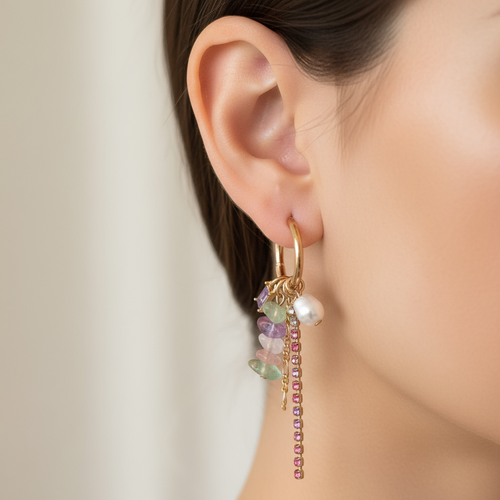 گوشواره زنانه آویز مهره رنگی طلایی برند اروپایی Iam ضدحساسیت