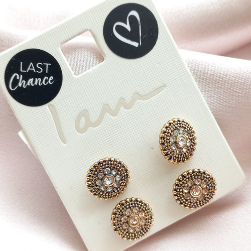 پک گوشواره زنانه میخی نگین طلایی برند اروپایی Iam ضدحساسیت