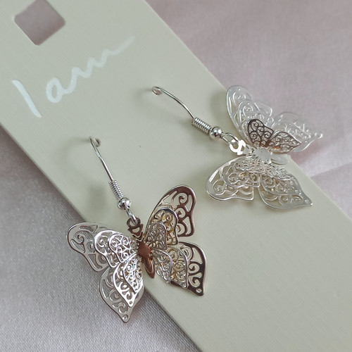گوشواره زنانه آویز پروانه نگین دار نقره ای برند اروپایی Iam ضدحساسیت