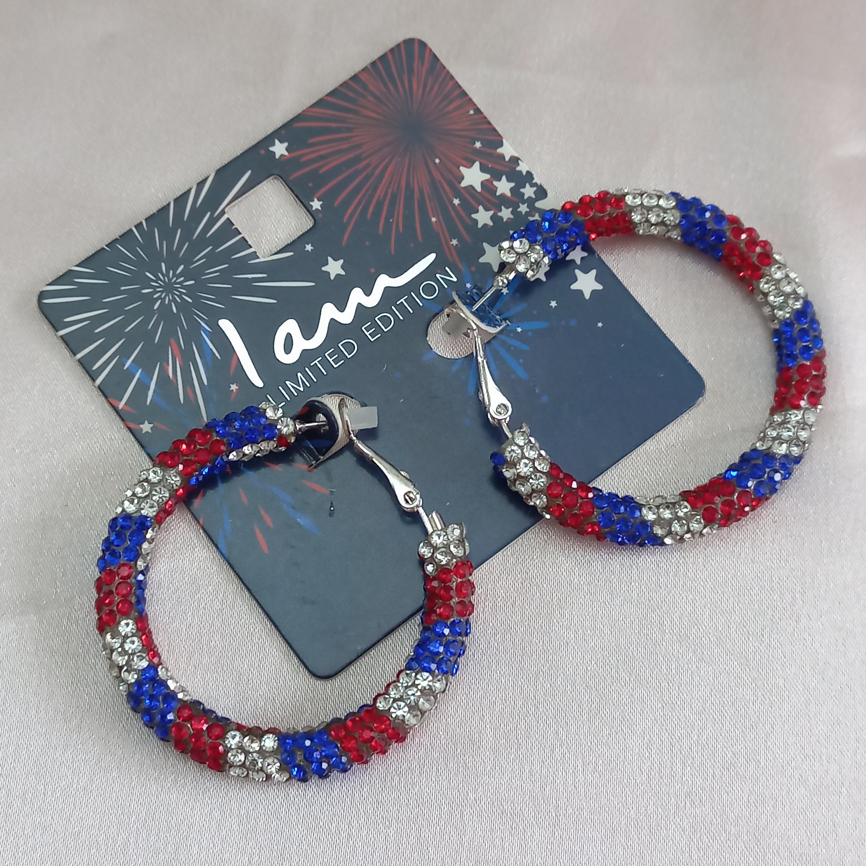 گوشواره زنانه ستاره نگین دار آبی قرمز سفید برند اروپایی آلمانی Iam ضدحساسیت