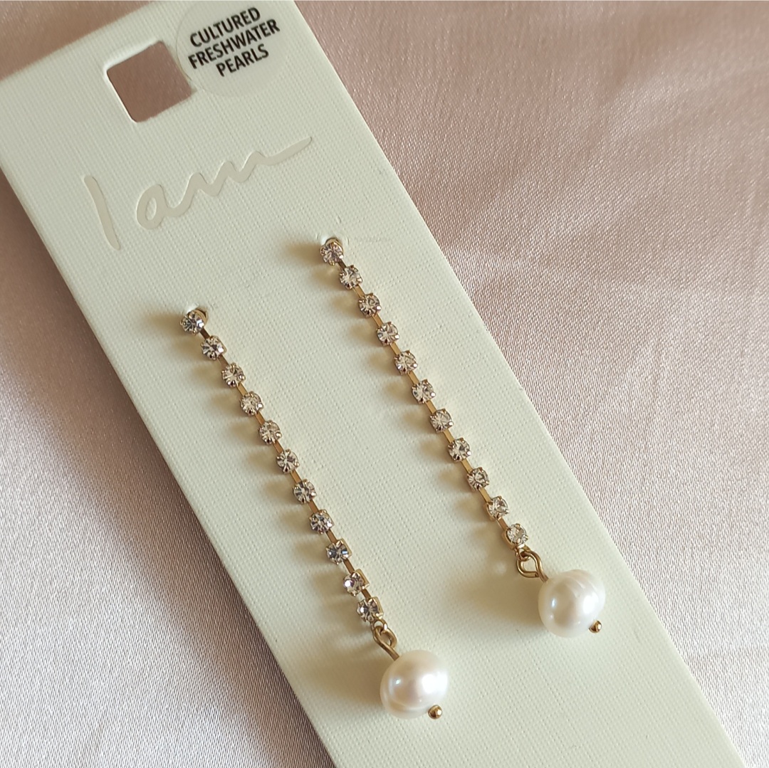 گوشواره زنانه میخی آویز نگین مروارید برند اروپایی Iam ضدحساسیت