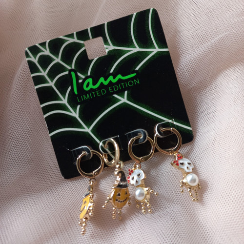 پک گوشواره زنانه قفلی اسکلت و کدو طلایی برند اروپایی Iam ضدحساسیت