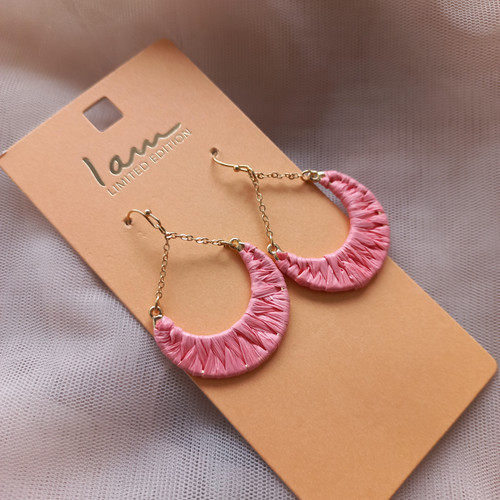 گوشواره زنانه نیم حلقه مکرومه صورتی طلایی برند اروپایی Iam ضدحساسیت