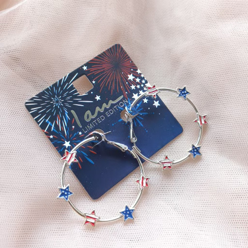 گوشواره زنانه حلقه ستاره دار نقره ای برند اروپایی Iam ضدحساسیت