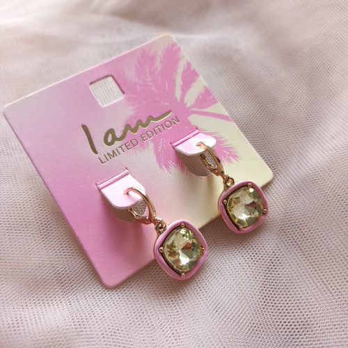 گوشواره زنانه آویز صورتی طلایی برند اروپایی Iam ضدحساسیت