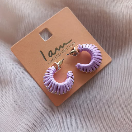 گوشواره زنانه نیم حلقه مکرومه بنفش طلایی برند اروپایی Iam ضدحساسیت