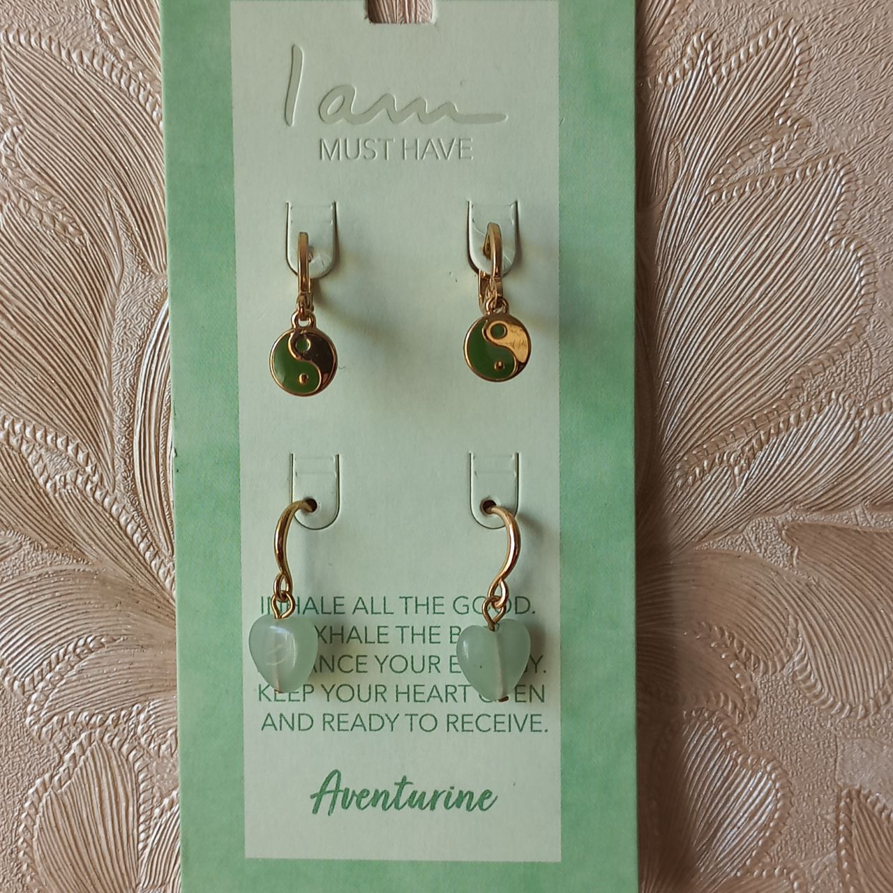 گوشواره زنانه آویز روح سبز طلایی برند اروپایی Iam ضدحساسیت