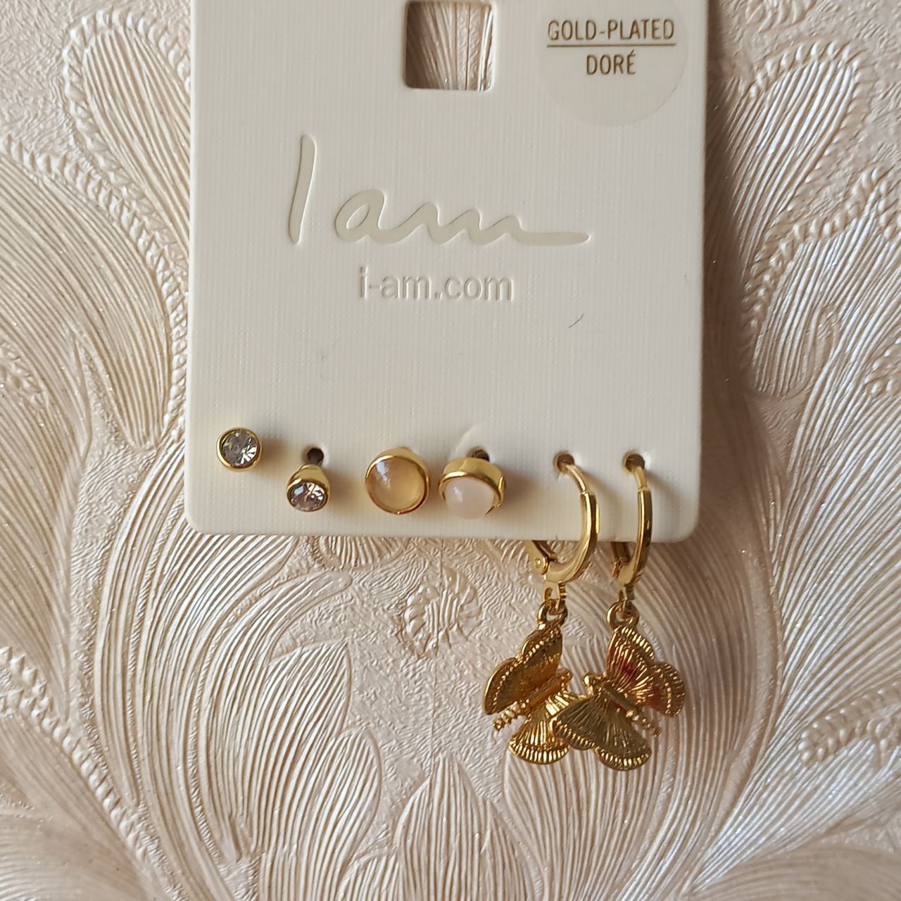 ناموجودپک گوشواره آویز قفلی میخی پروانه نگین روکش طلایی برند اروپایی Iam ضدحساسیت