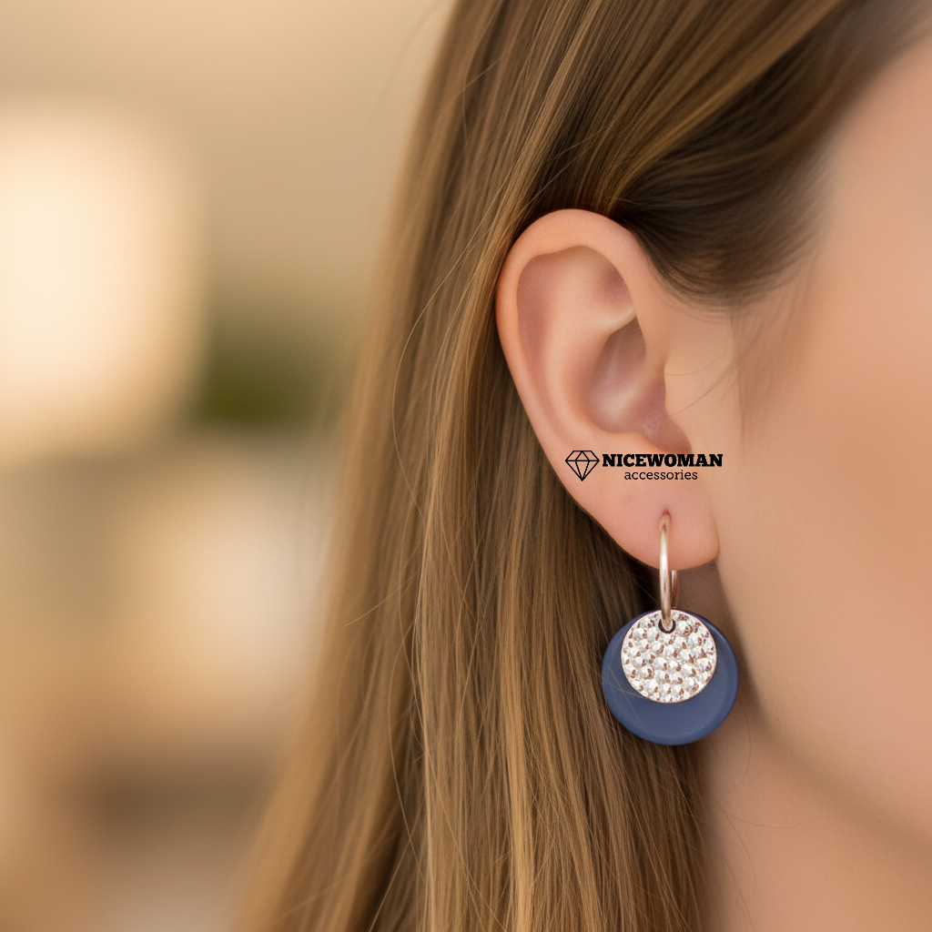 ناموجودگوشواره زنانه نیم حلقه ای آویز آبی برند اروپایی Iam ضدحساسیت