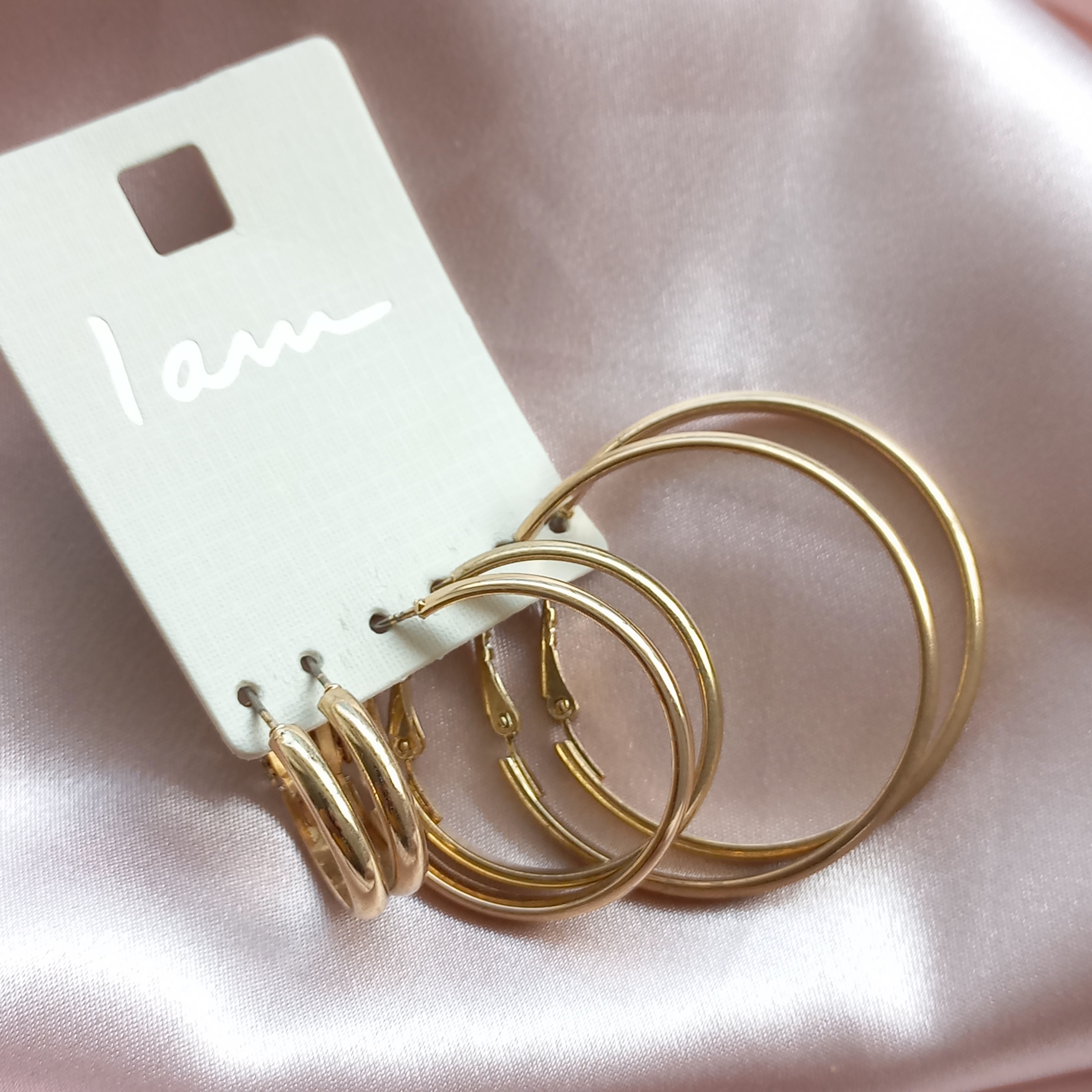گوشواره زنانه حلقه نگیندار طلایی روکش طلا برند Iam اروپایی ضدحساسیت