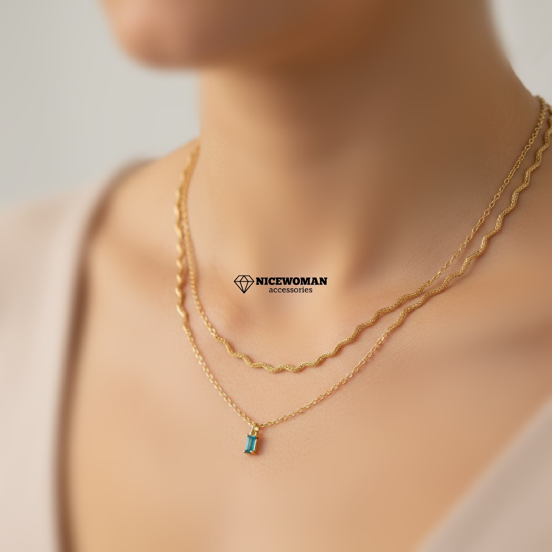 ناموجودگردنبند زنانه دو ردیف زنجیر نگین دار برند اروپایی Iam ضدحساسیت