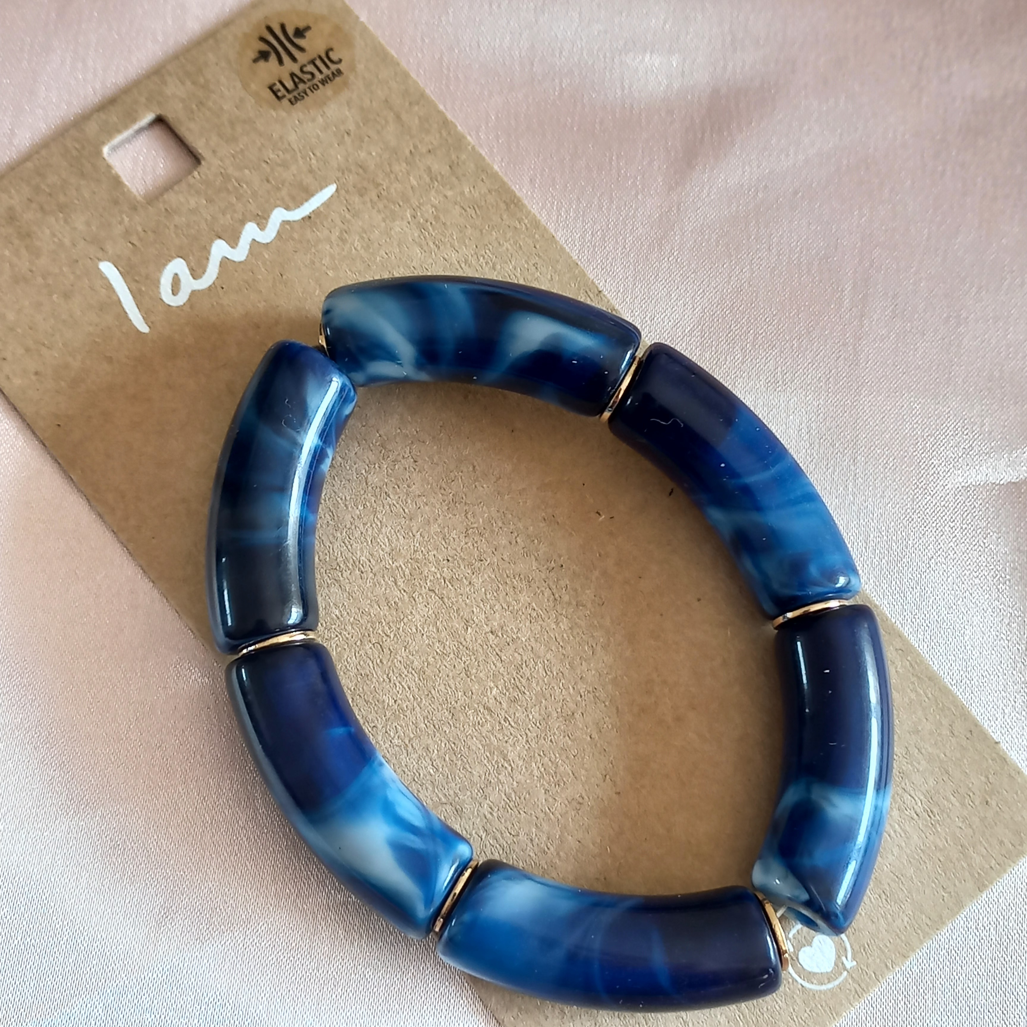 دستبند زنانه کشی رزین آبی سرمه ای برند اروپایی Iam ضدحساسیت