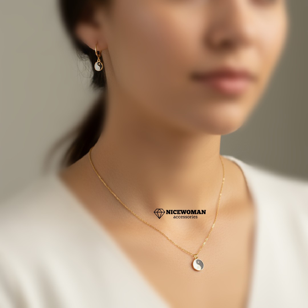 ناموجودنیمست زنانه زنجیر و پلاک و گوشواره یینگ و یانگ روکش طلا برند اروپایی Iam ضدحساسیت
