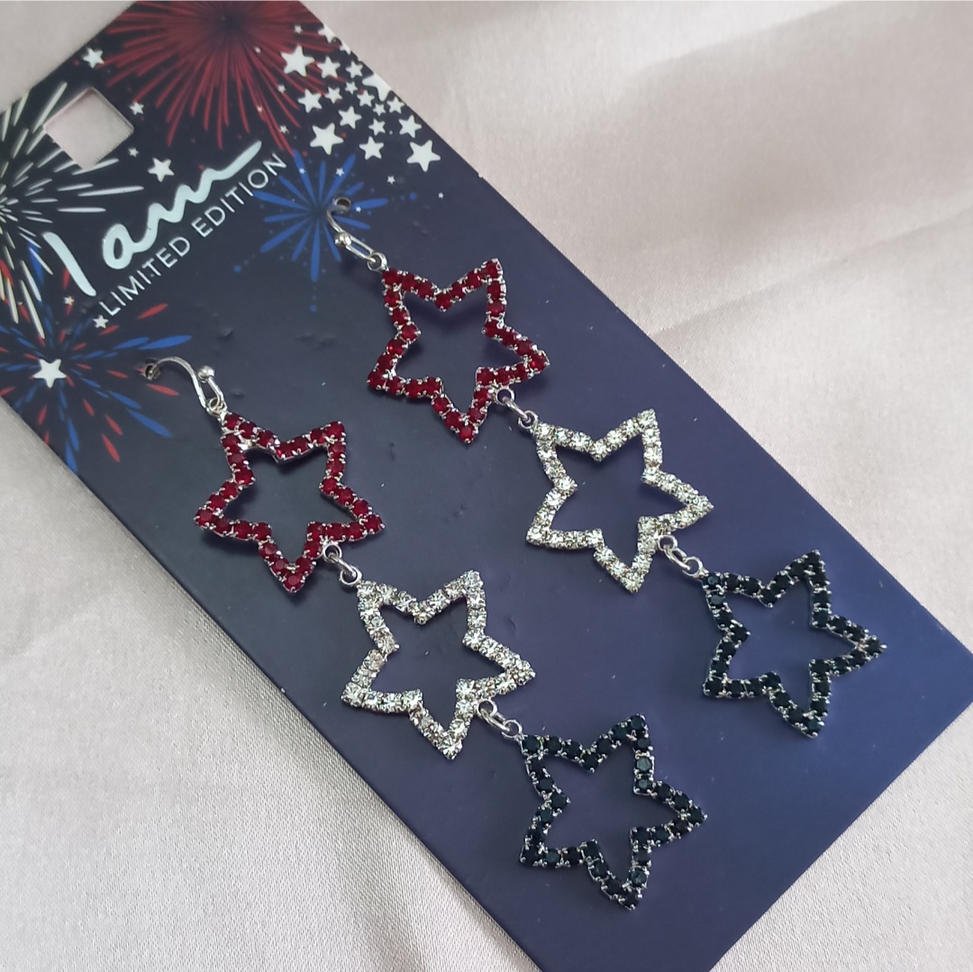 گوشواره زنانه ستاره نگین دار آبی قرمز سفید برند اروپایی آلمانی Iam ضدحساسیت