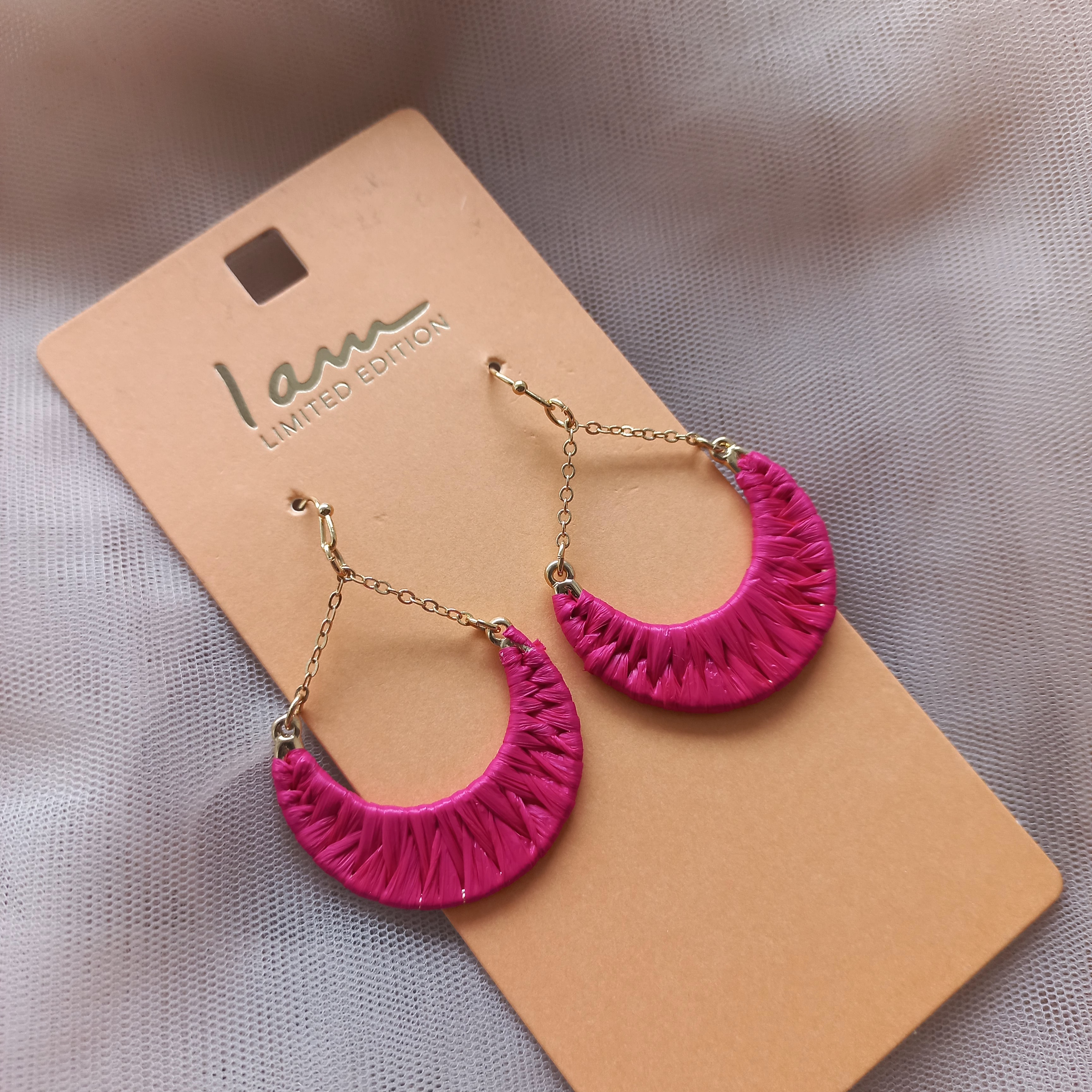 گوشواره زنانه نیم حلقه مکرومه صورتی طلایی برند اروپایی Iam ضدحساسیت