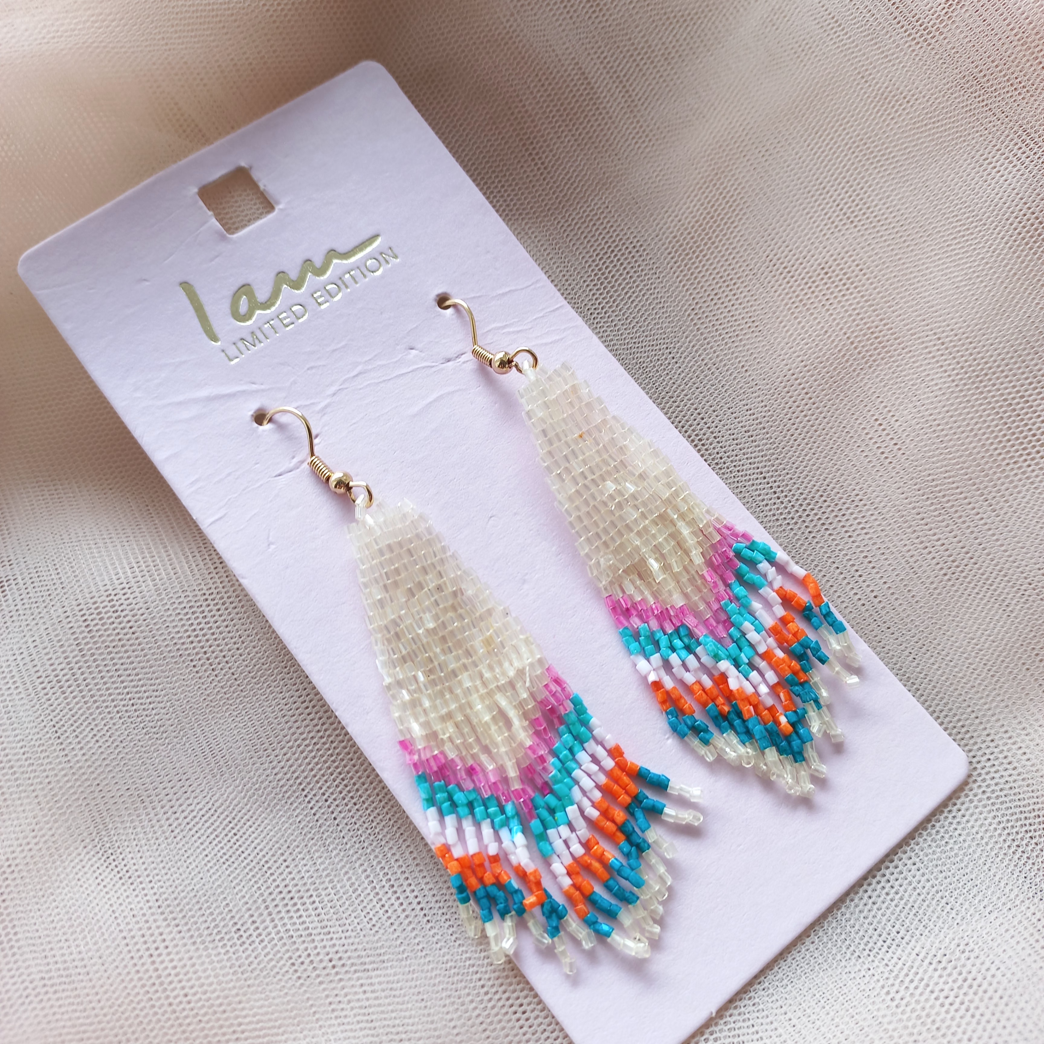 گوشواره زنانه آویز مهره رنگی طلایی برند اروپایی Iam ضدحساسیت