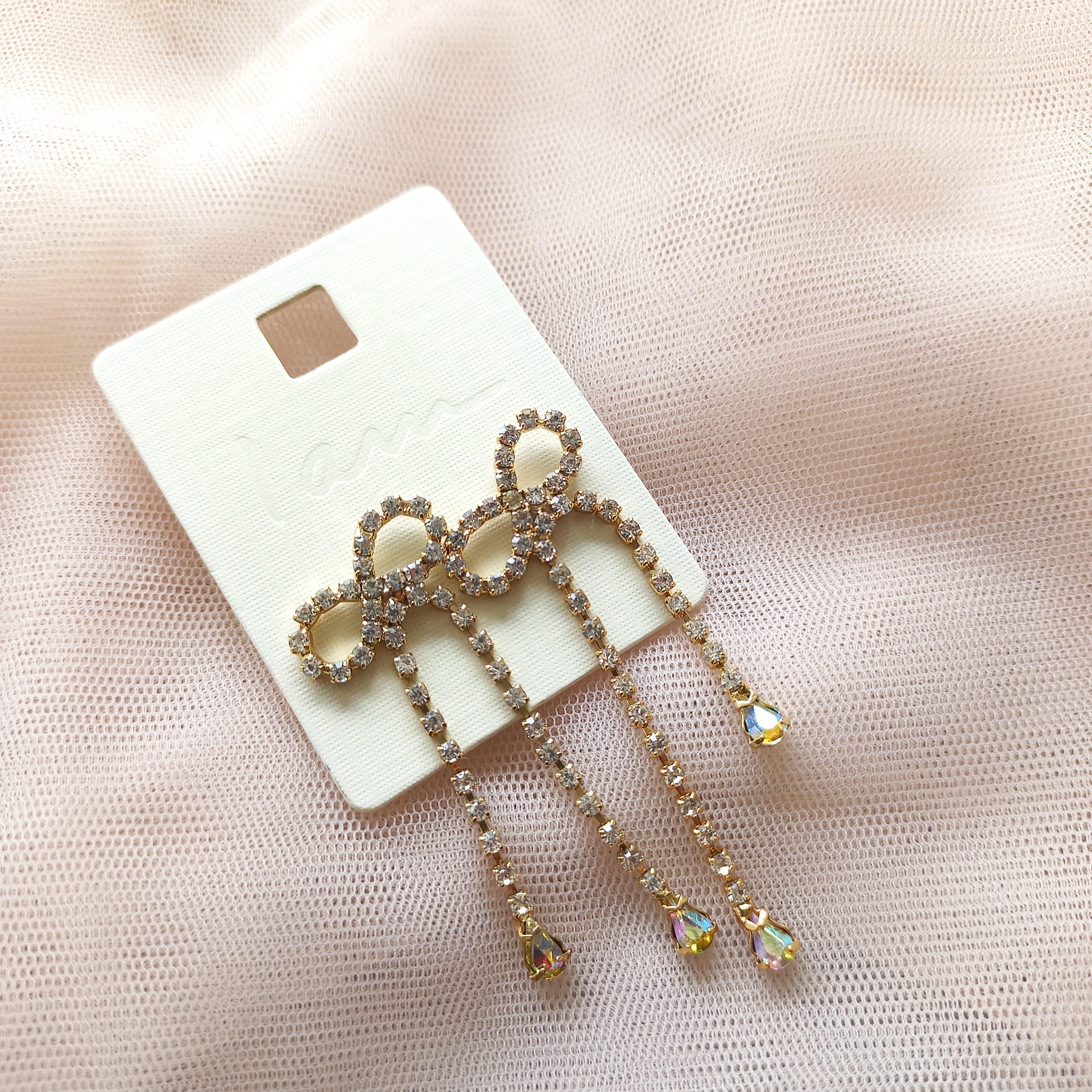 گوشواره زنانه میخی آویز پاپیون نگیندار طلایی برند اروپایی Iam ضدحساسیت