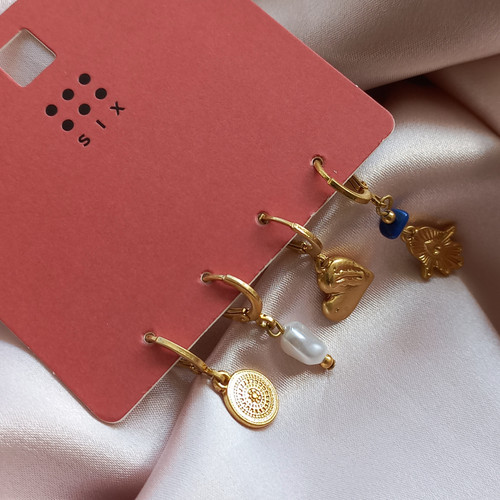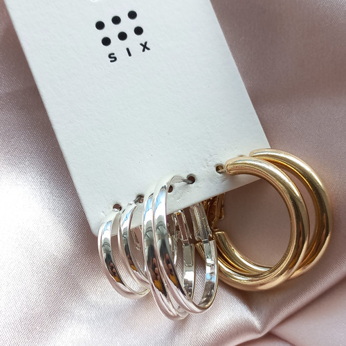 پک گوشواره زنانه حلقه ای قفلی طلایی و نقره ای برند اروپایی six ضدحساسیت