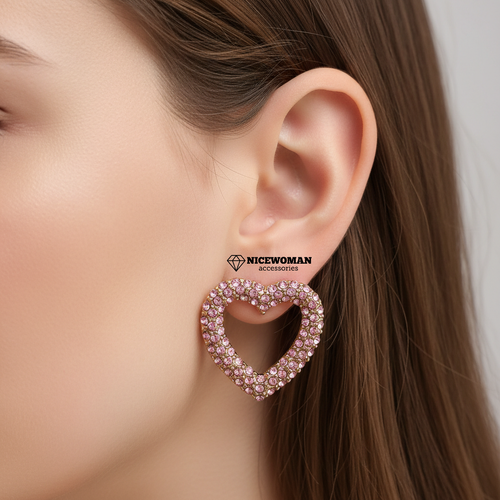 گوشواره زنانه میخی قلب نگین صورتی برند اروپایی six ضدحساسیت
