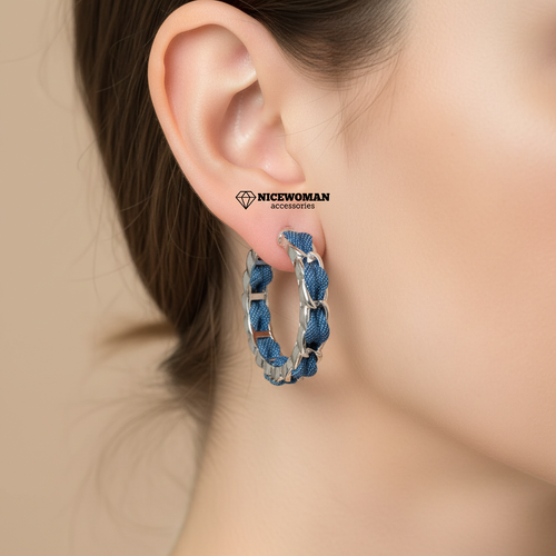 گوشواره زنانه نیم حلقه کارتیر سرمه ای نقره ای برند اروپایی six ضدحساسیت