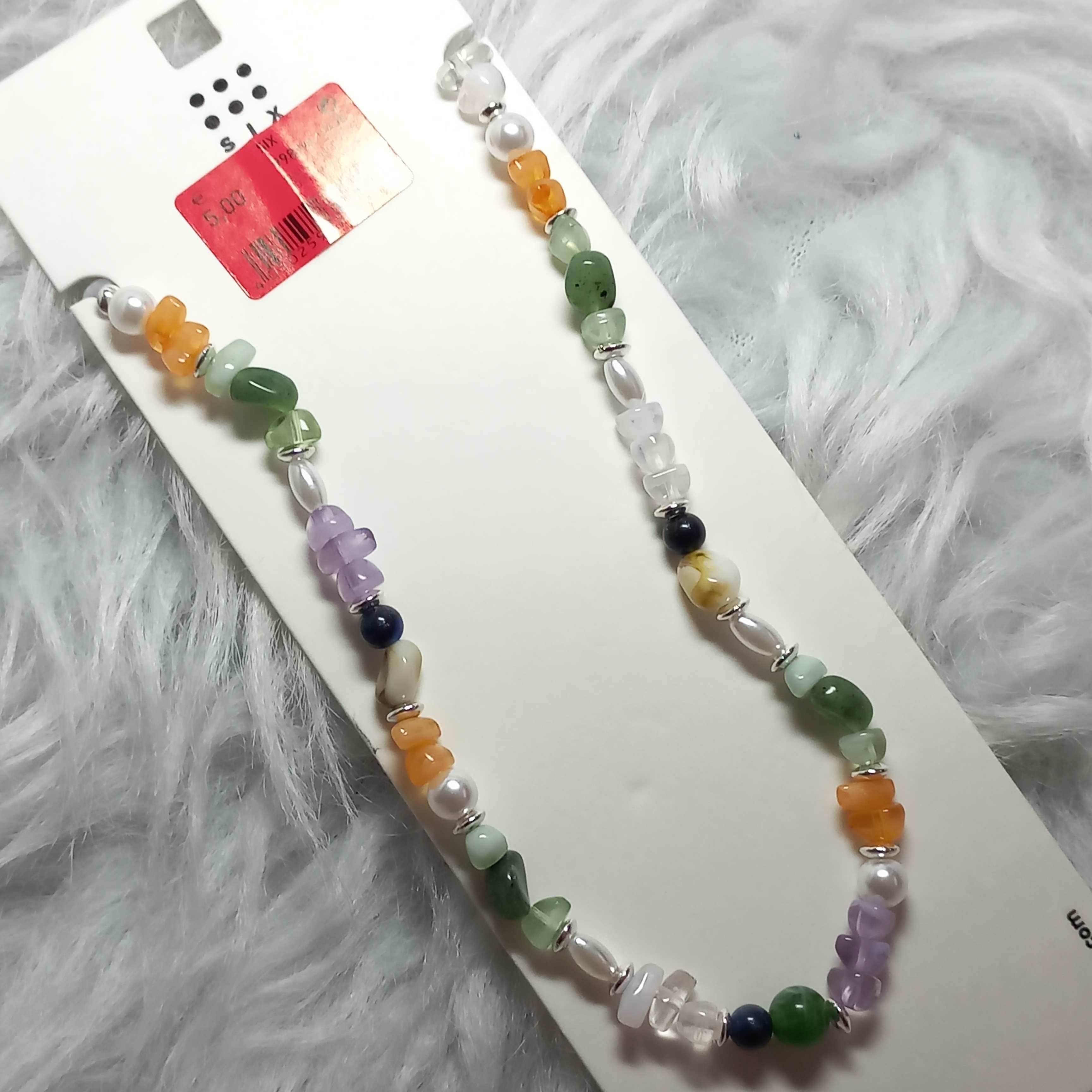 گردنبند زنانه مروارید سنگ رنگی برند اروپایی six ضدحساسیت