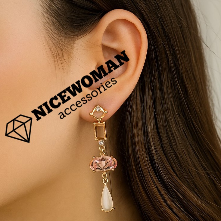 ناموجودگوشواره زنانه میخی آویز سنگی نگین صورتی برند اروپایی Iam ضدحساسیت
