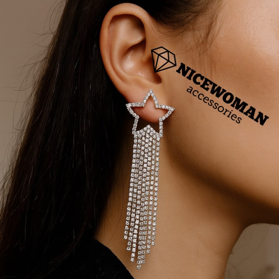 ناموجودگوشواره زنانه میخی ستاره آویزدار فول نگین سفید برند اروپایی Iam ضدحساسیت